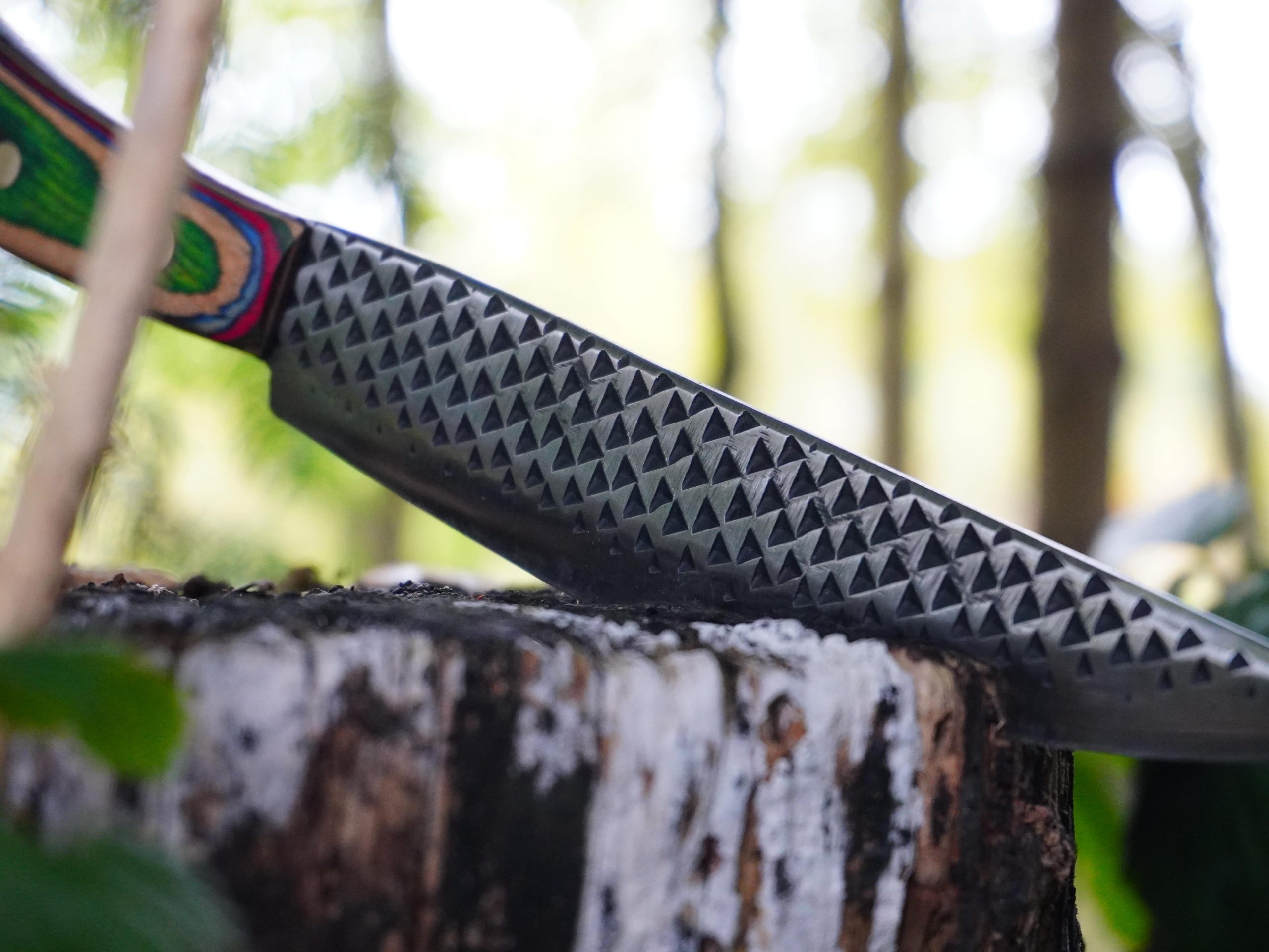 The Silver Fin represents the second, deeper stage of the craft: the shift from raw force to unwavering precision. Unlike the inaugural piece, this kitchen artifact bears no hammer marks. It is a testament to the quiet, focused labor where the steel is moved not by shock, but by steady, deliberate pressure. Its shape is intentionally fluid, mirroring the elegant lines of a river fish, designed to move quickly and effortlessly through kitchen prep. This knife embodies the principle: Precision is the ultimate act of respect.